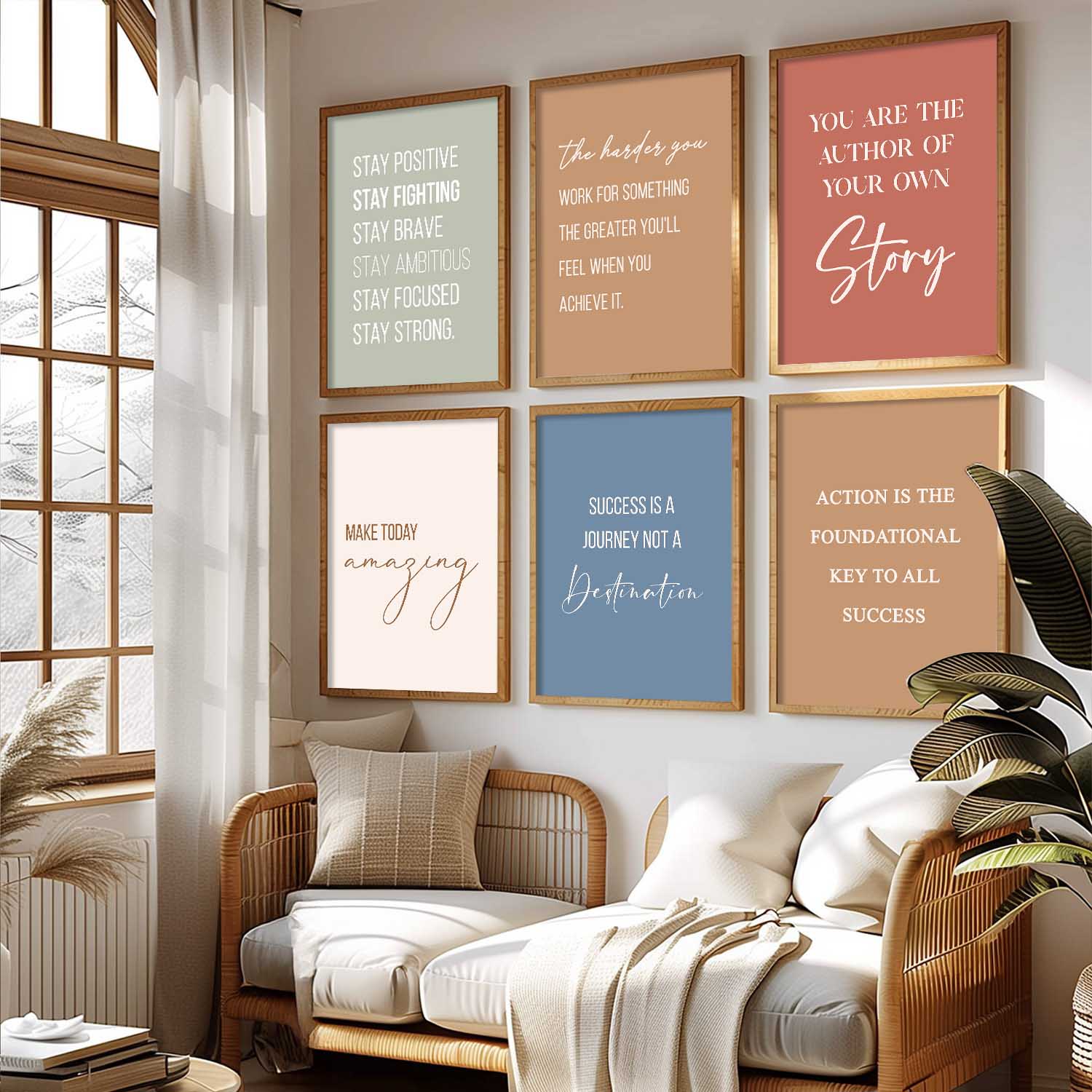 Motivational Quotes Posters with Frame for Office Living Room Bedroom Study Room School Wall Decor Set of 6