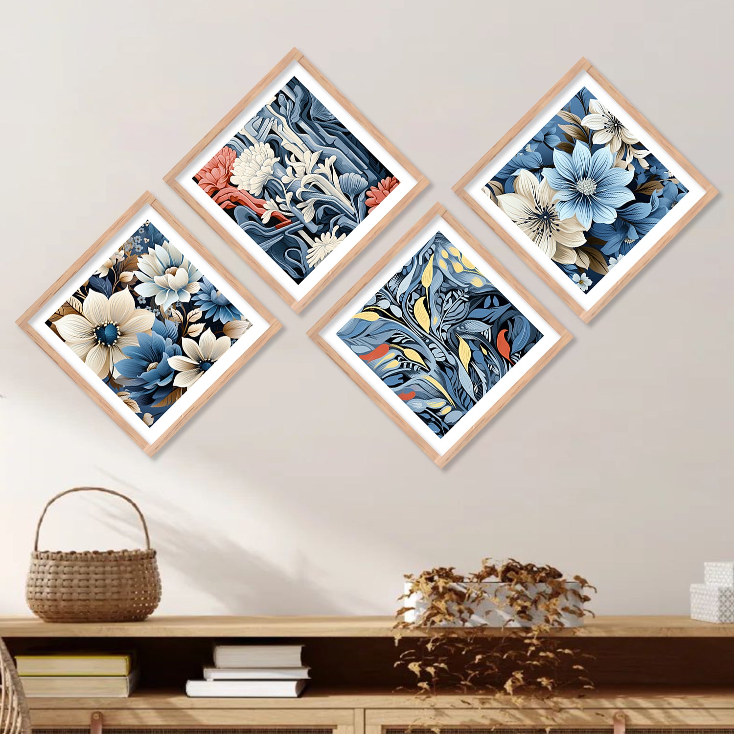 Nature Inspired Blue Floral Art Prints Set of Home Living Room Bedroom Office Wall decor
