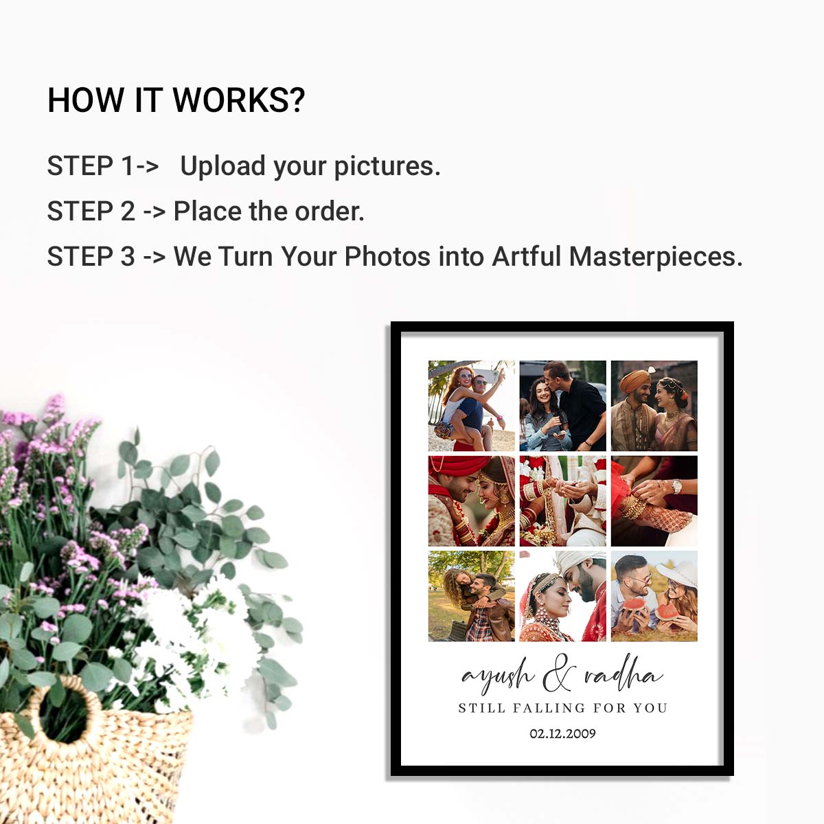 Each frame is beautifully crafted and customized to showcase your cherished memories. Convert your pictures into beautiful art with our high-quality frames, ensuring a lasting and elegant finish.
