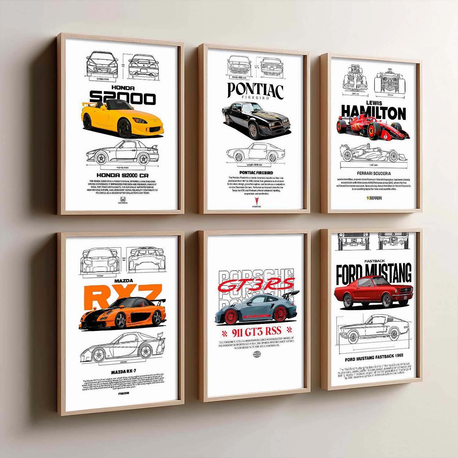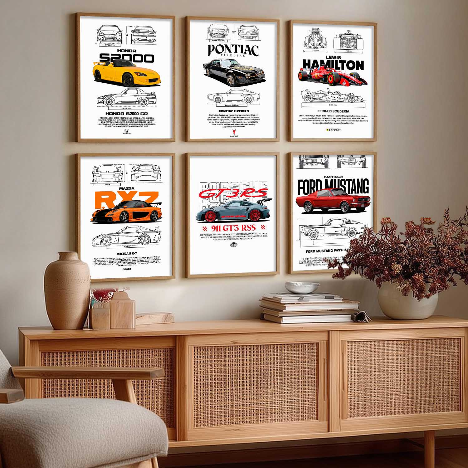 Porsche 911 Ford Mustang Formula 1 Car Wall Art Paintings with Frame for Living Room Bedroom