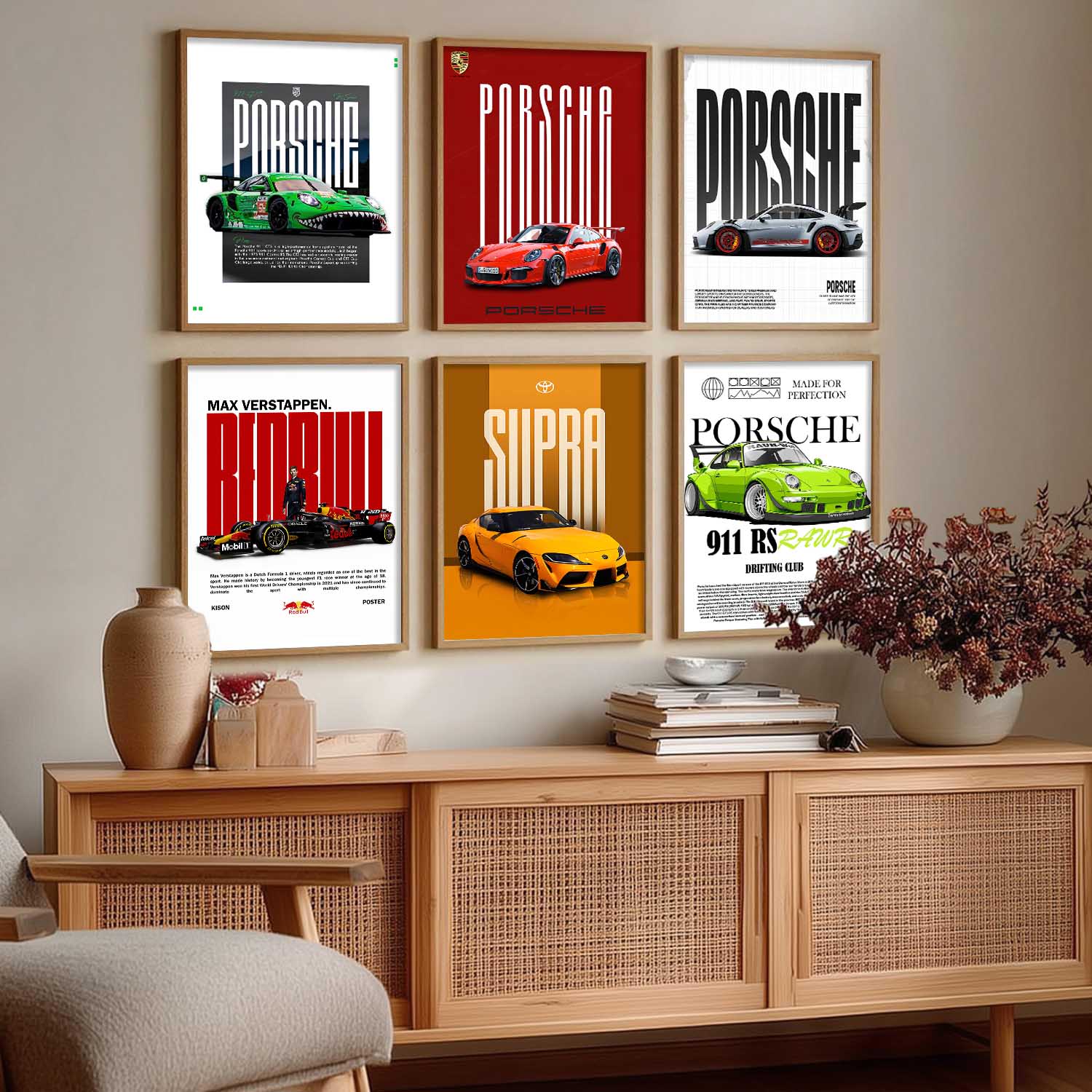 Porsche 911GT Toyota Supra Car Wall Art Paintings with Frame for Living Room Bedroom