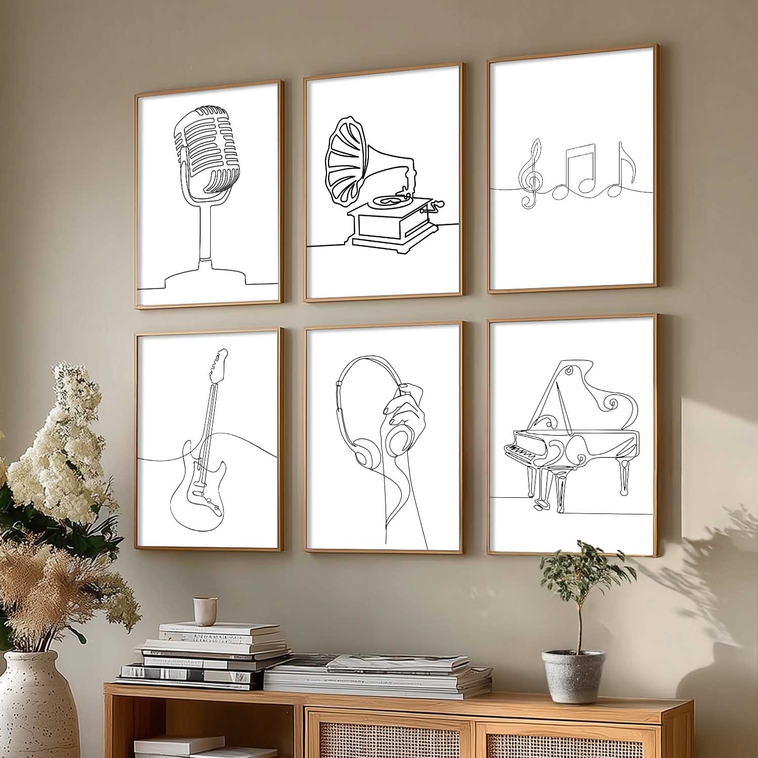 Minimalist Music Line Wall Art Paintings with Frame for Living Room Bedroom