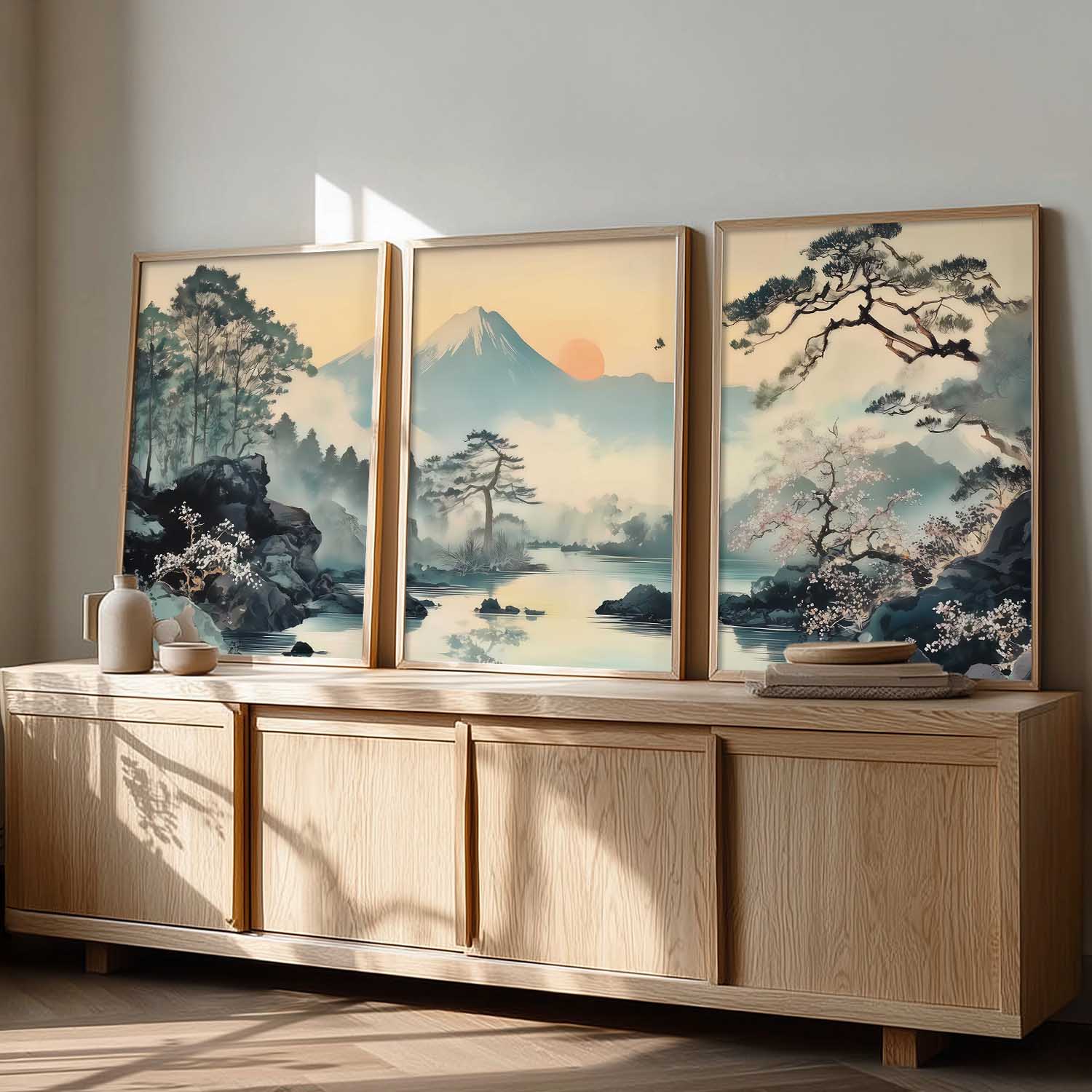 Japanese Nature Art View Framed Poster | Big Aesthetic Mountain View Art Wall Framed Posters for Living Room Bedroom Wall Decor