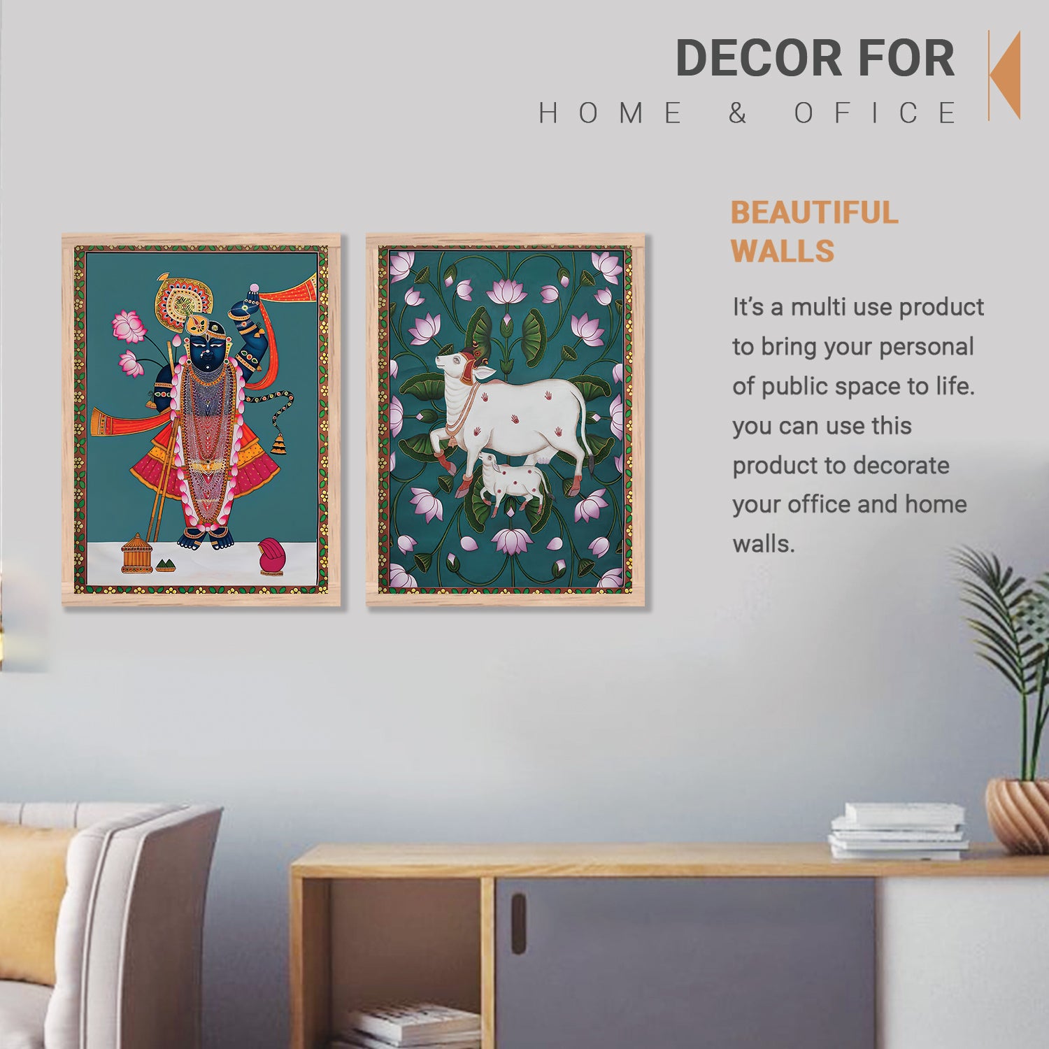 Shri Nath Ji Madhubani Art Combo for Living Room Bedroom Home an Office Wall Decor