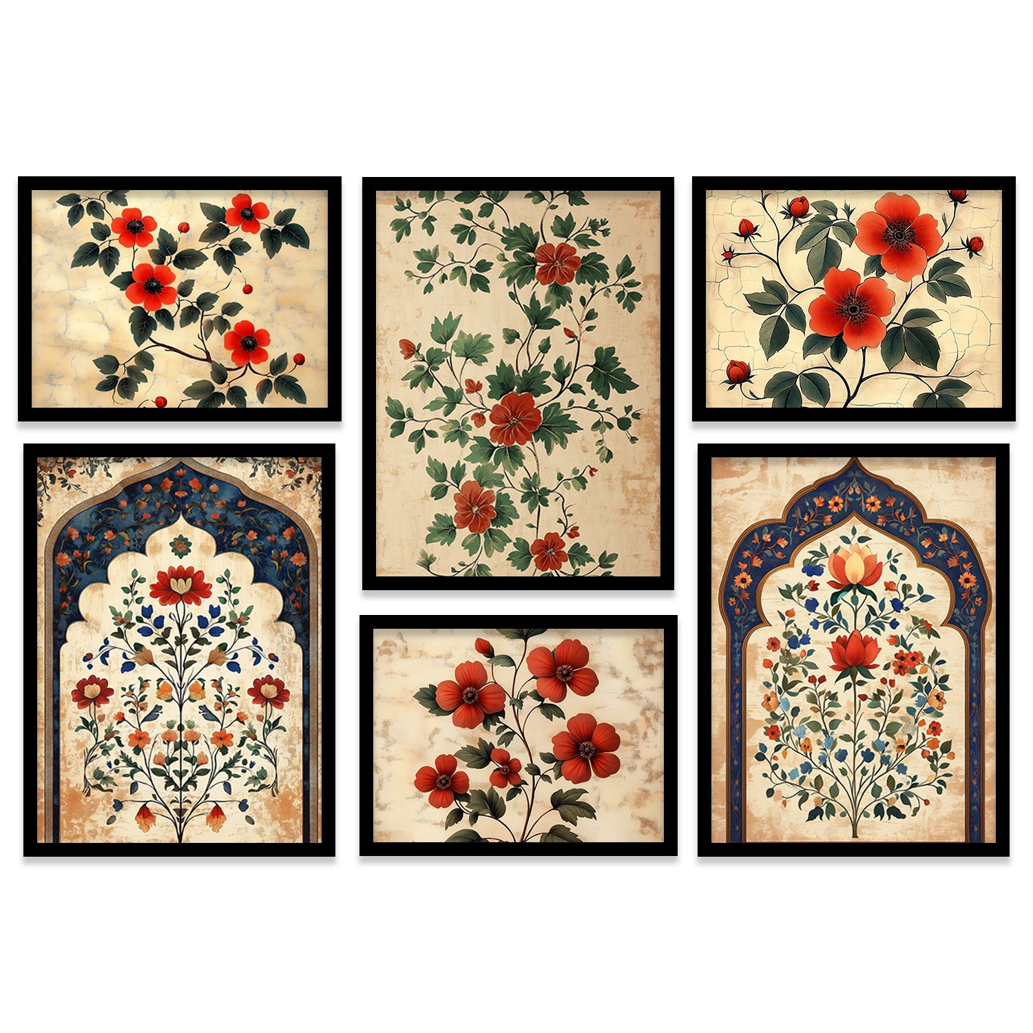 Floral Art Prints with Frame for Living Room Bedroom Home and Office Wall Decor Set of 6