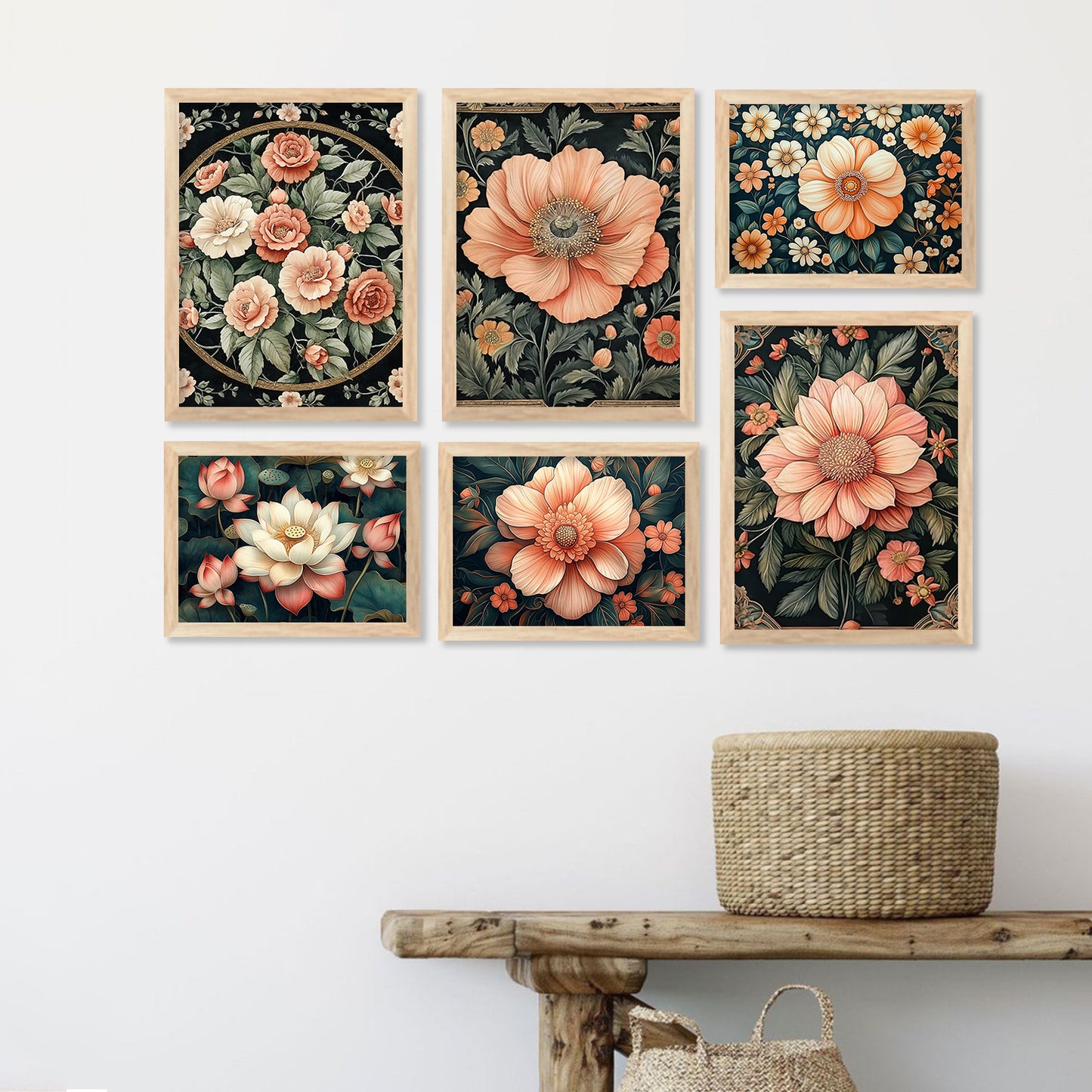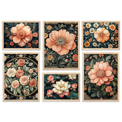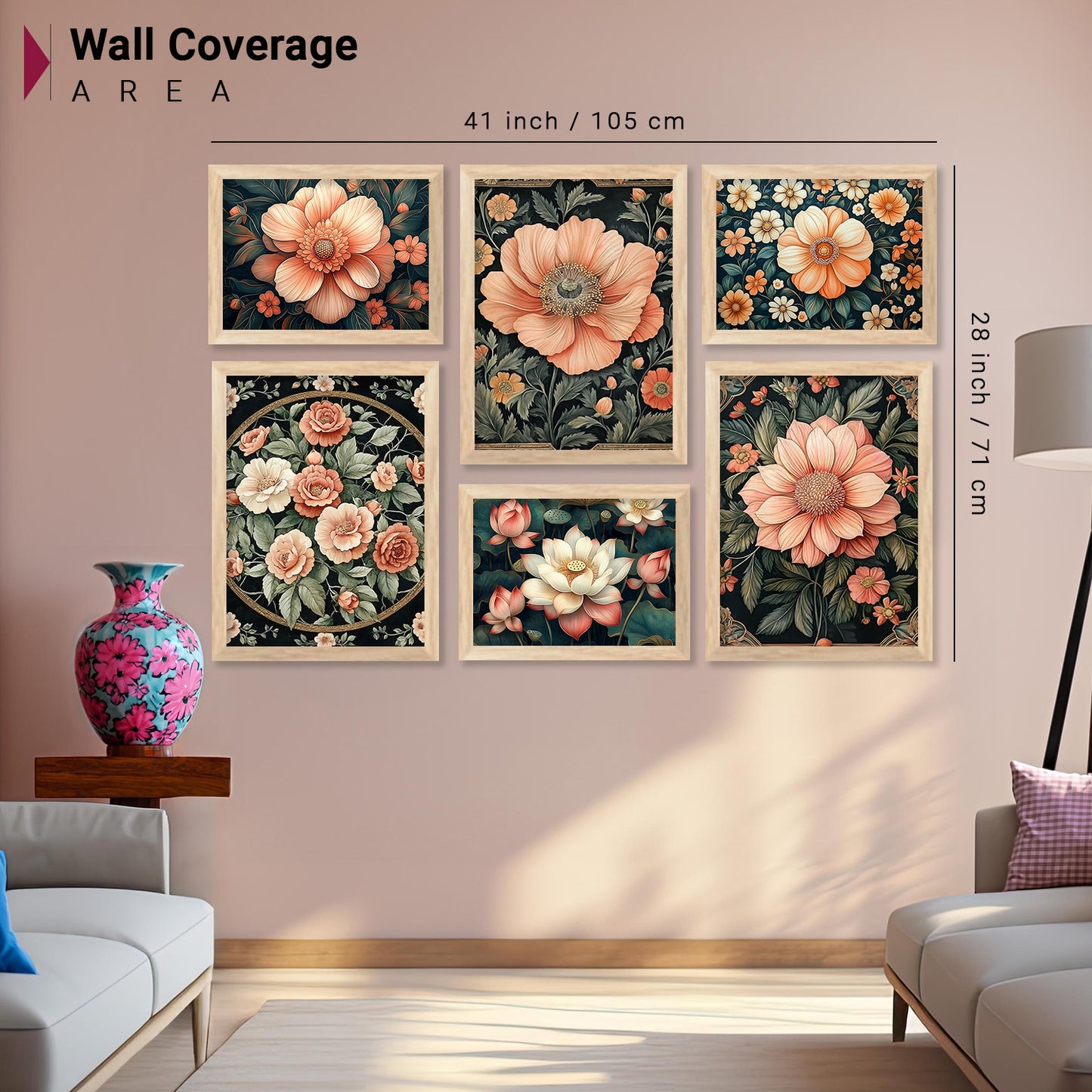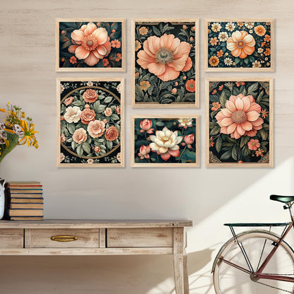 Floral Art Prints with Frame for Living Room Bedroom Home and Office Wall Decor Set of 6