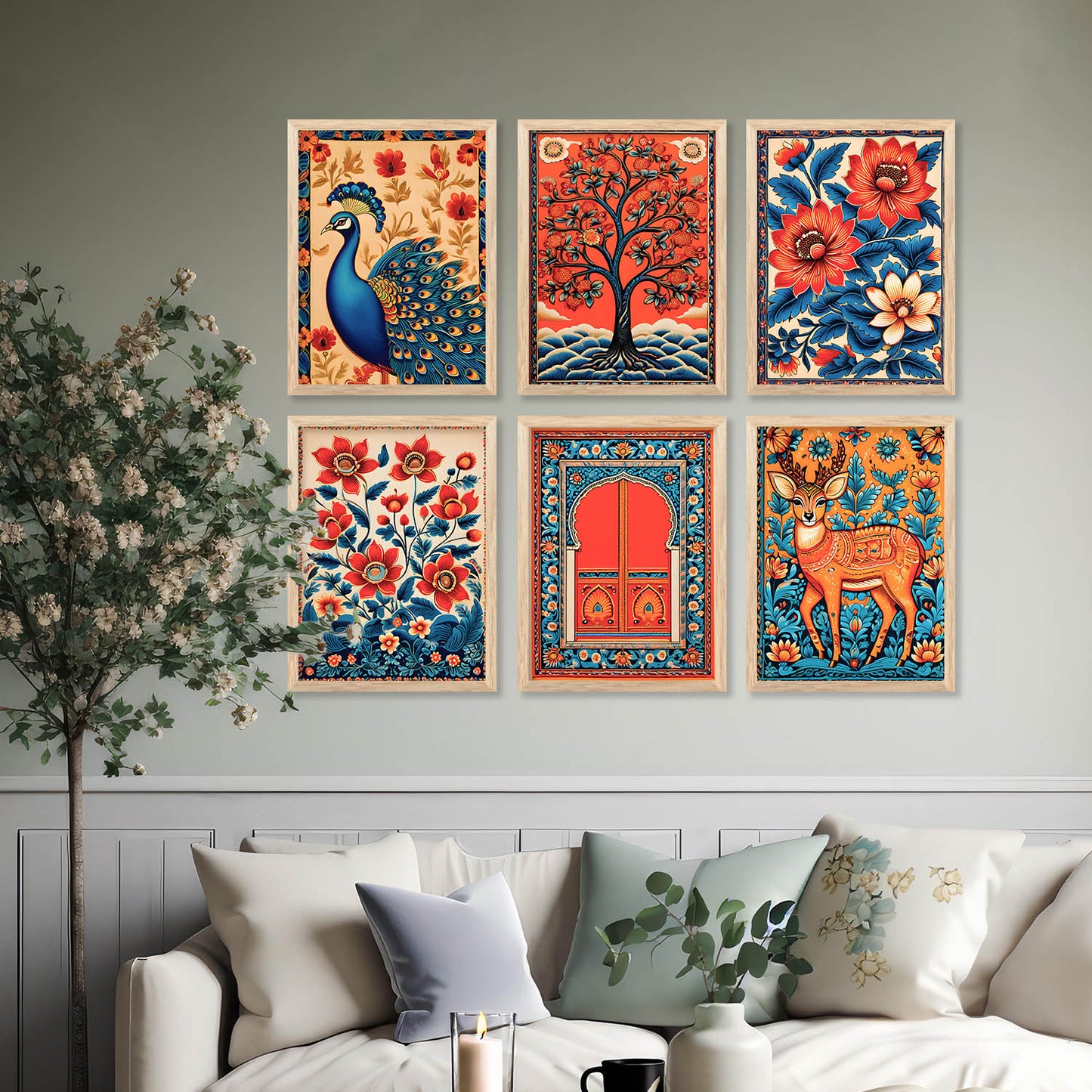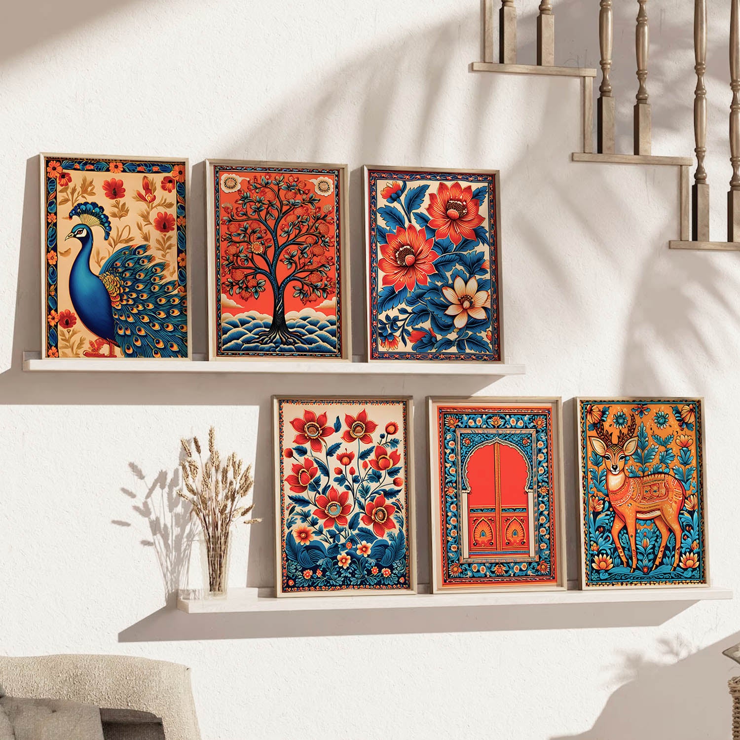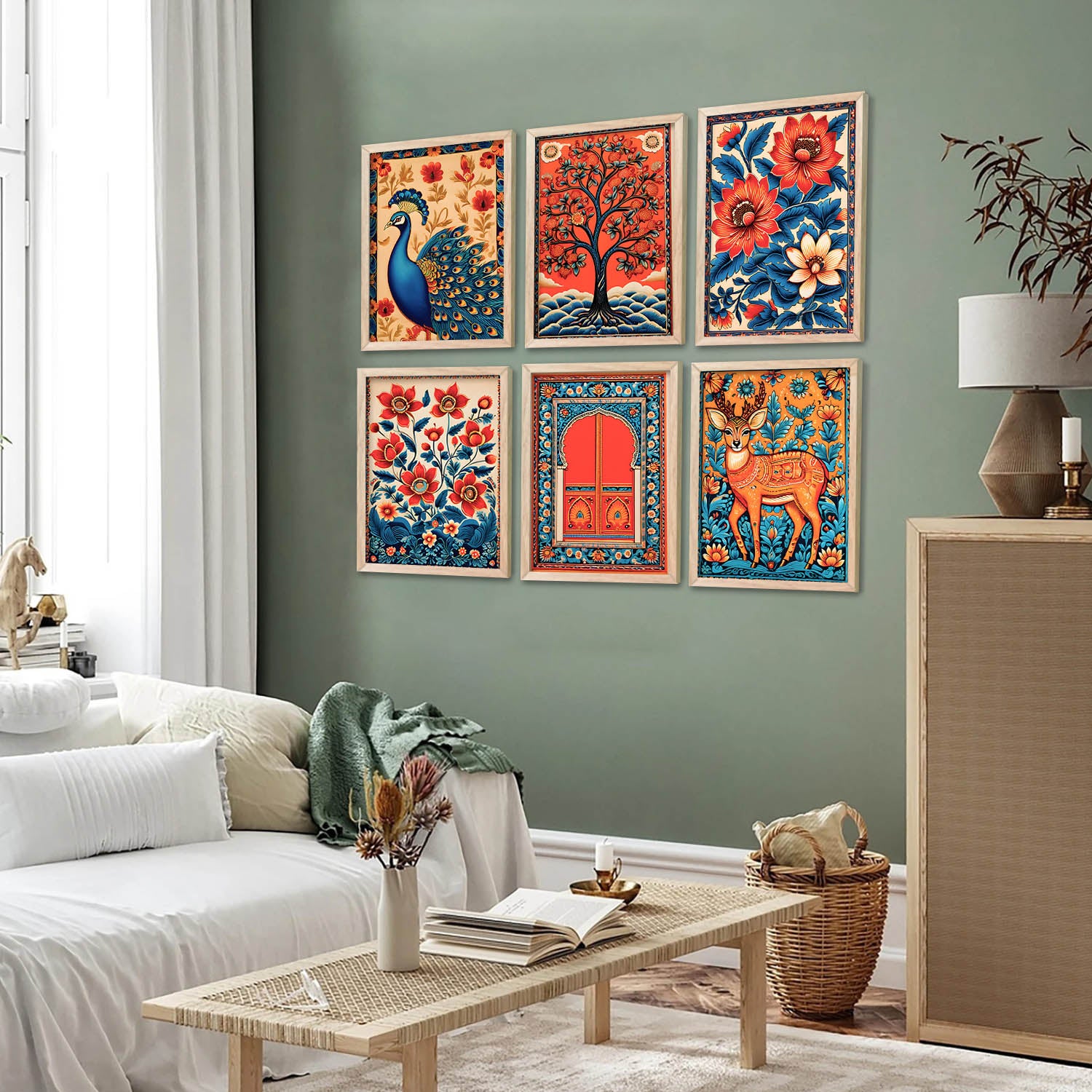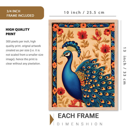 Traditional Indian Inspired Madhubani Art Prints with Frame for Living Room