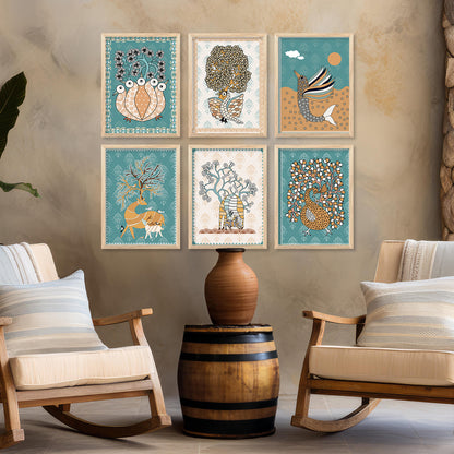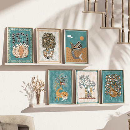 Transform your interior with the "Traditional Indian Art Elegance Series," a sophisticated collection of framed prints that exemplifies traditional wall painting and wall decoration. Each piece features a distinctive wall painting design, blending elements of traditional wall painting with the intricate details of Traditional Indian / Madhubani painting. This series not only serves as captivating wall art but also enriches any space as a cherished wall piece. Ideal for those looking to infuse their environments with the timeless allure of traditional wall decor, this collection offers a perfect mix of artistry and cultural heritage.
