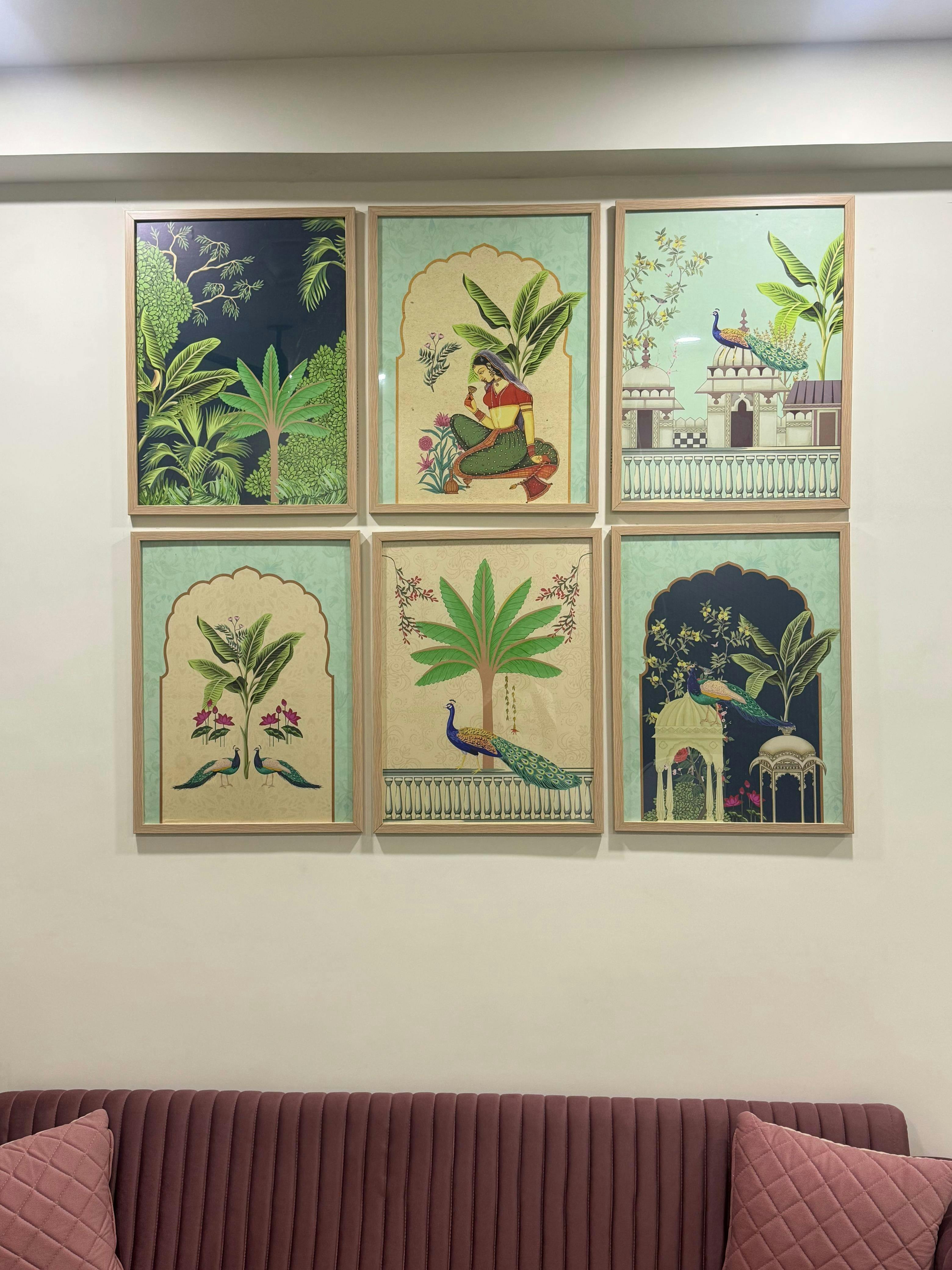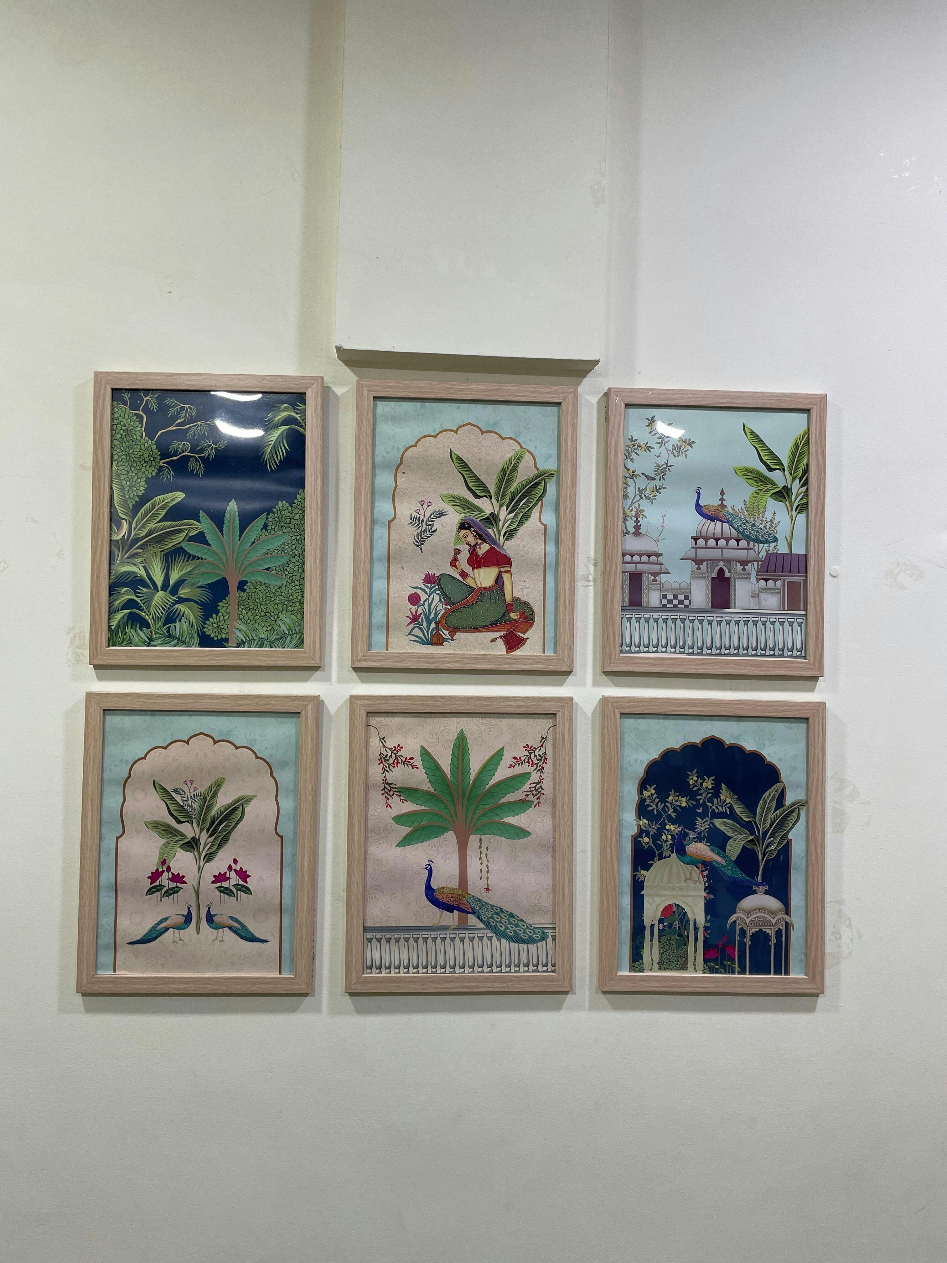 Traditional Indian Pichwai Art Framed Prints for Elegant Home Decor Set of 6