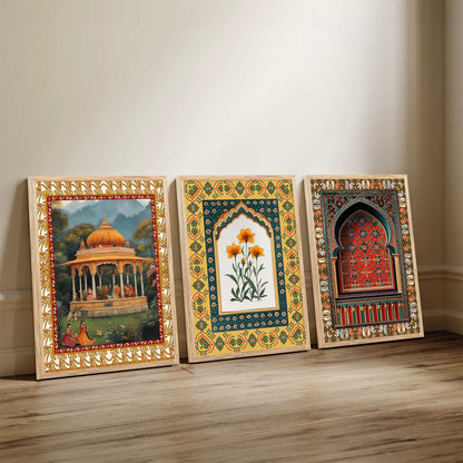 Transform your interior with the "Traditional Indian Art Elegance Series," a sophisticated collection of framed prints that exemplifies traditional wall painting and wall decoration. Each piece features a distinctive wall painting design, blending elements of traditional wall painting with the intricate details of Traditional Indian / Madhubani painting. This series not only serves as captivating wall art but also enriches any space as a cherished wall piece. Ideal for those looking to infuse their environments with the timeless allure of traditional wall decor, this collection offers a perfect mix of artistry and cultural heritage.