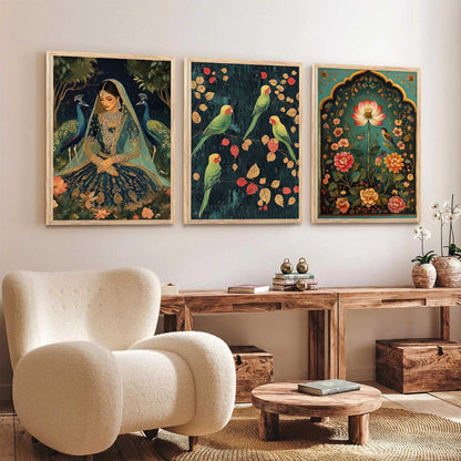 Transform your interior with the "Traditional Indian Art Elegance Series," a sophisticated collection of framed prints that exemplifies traditional wall painting and wall decoration. Each piece features a distinctive wall painting design, blending elements of traditional wall painting with the intricate details of Traditional Indian / Madhubani painting. This series not only serves as captivating wall art but also enriches any space as a cherished wall piece. Ideal for those looking to infuse their environments with the timeless allure of traditional wall decor, this collection offers a perfect mix of artistry and cultural heritage.