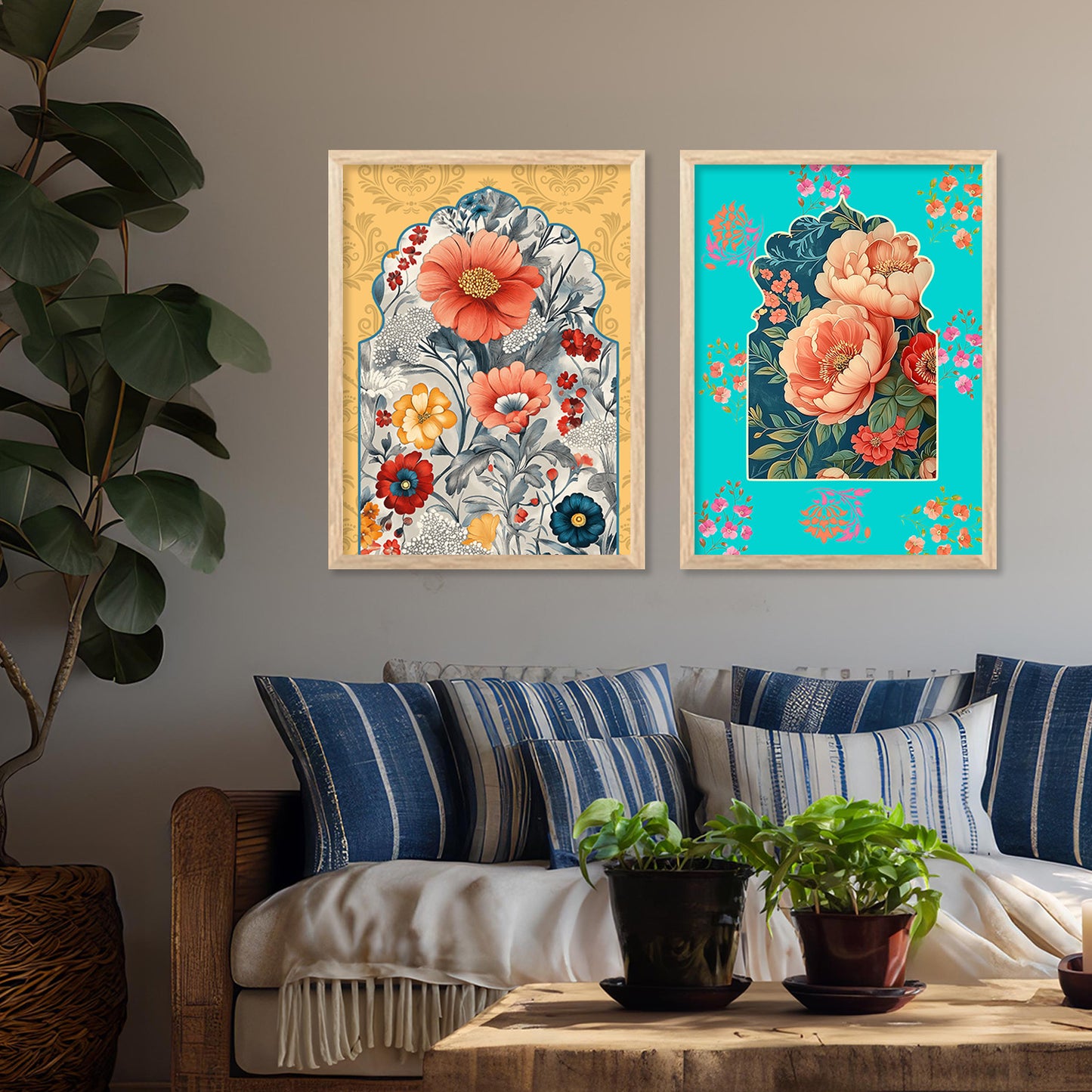 Transform your interior with the "Traditional Indian Art Elegance Series," a sophisticated collection of framed prints that exemplifies traditional wall painting and wall decoration. Each piece features a distinctive wall painting design, blending elements of traditional wall painting with the intricate details of Madhubani painting. This series not only serves as captivating wall art but also enriches any space as a cherished wall piece. Ideal for those looking to infuse their environments with the timeless allure of traditional wall decor, this collection offers a perfect mix of artistry and cultural heritage.