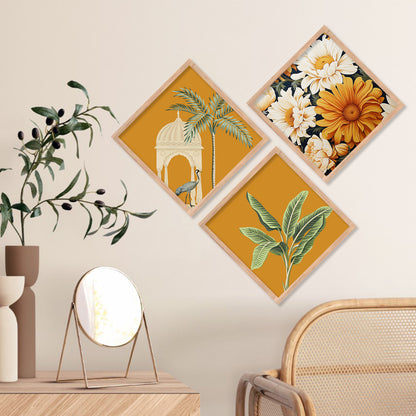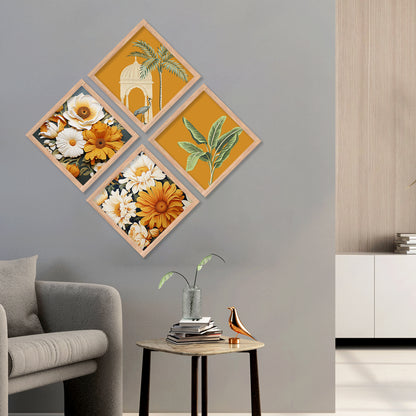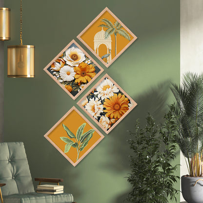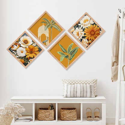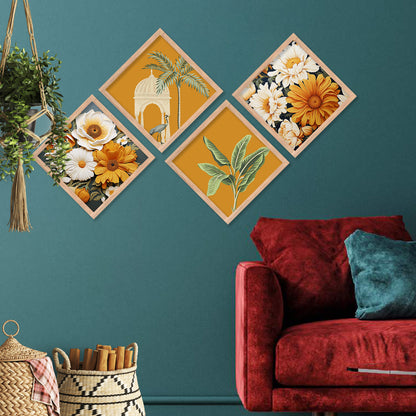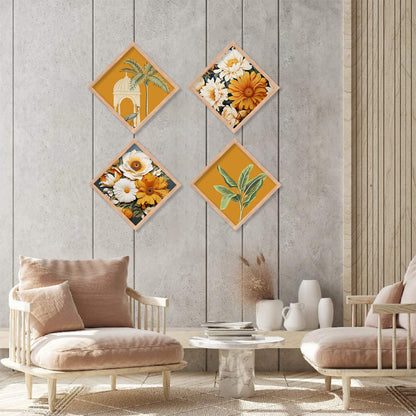Yellow Floral Modern Art Framed Print Combo for Home Living Room Office Wall Decor